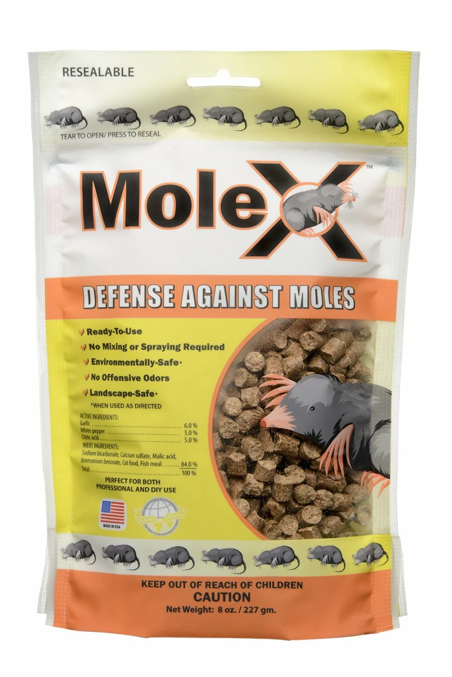 Introducing Molex™, A Scientifically Formulated Pellet To Safely Eliminate Moles. Molex™ Is An Eco-friendly Effective Solution Against All Species Of Moles. Molex™ Is An Easy To Use, 100% Naturally Derived, Safer Approach To Controlling Moles. It Is Fully Biodegradable And Generates No Environmental Pollution. Molex™ Is A New Approach To Effectively Kill Unwanted Moles From Lawns, Ornamental Gardens, Flower Beds, And Non-crop Grassy Areas.