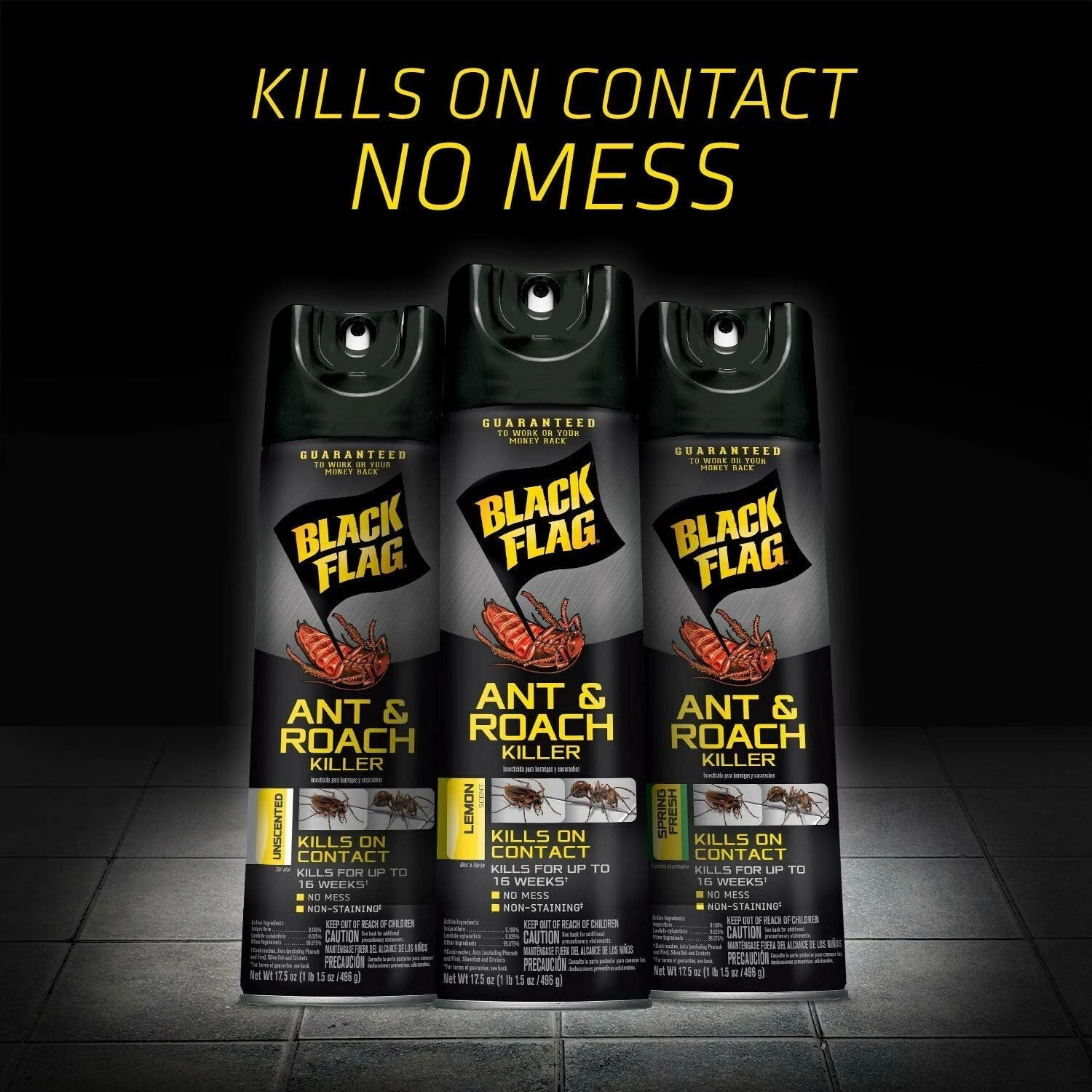 Black Flag Ant And Roach Killer 17.5 Oz. Aerosol Spray Kills On Contact In A No-mess, No-staining Spring Fresh Scented Formula. It Keeps Killing German Cockroaches For Up To 3 Months.