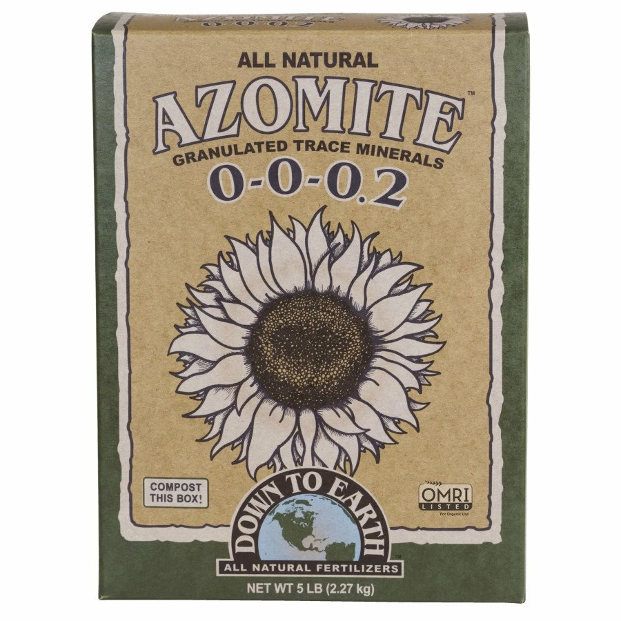 - Down To Earth Azomite Is A Five Pound Box Of All Natural Granulated Trace Minerals With 0-0-0.2 Formula And Is Listed By The Organic Materials Review Institute (Omri) For Use In Organic Production.