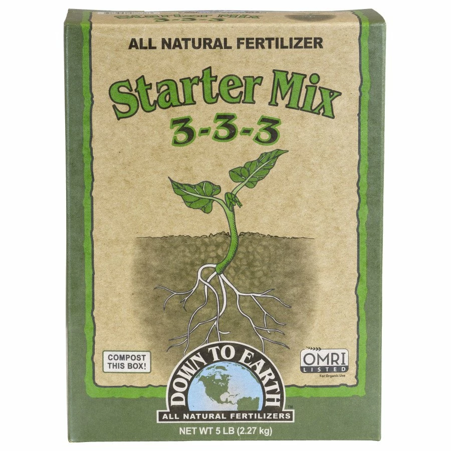 - Down To Earth Starter Mix is a five pound box of all natural fertilizer with 3-3-3 formula and is listed by the Organic Materials Review Institute (OMRI) for use in organic production