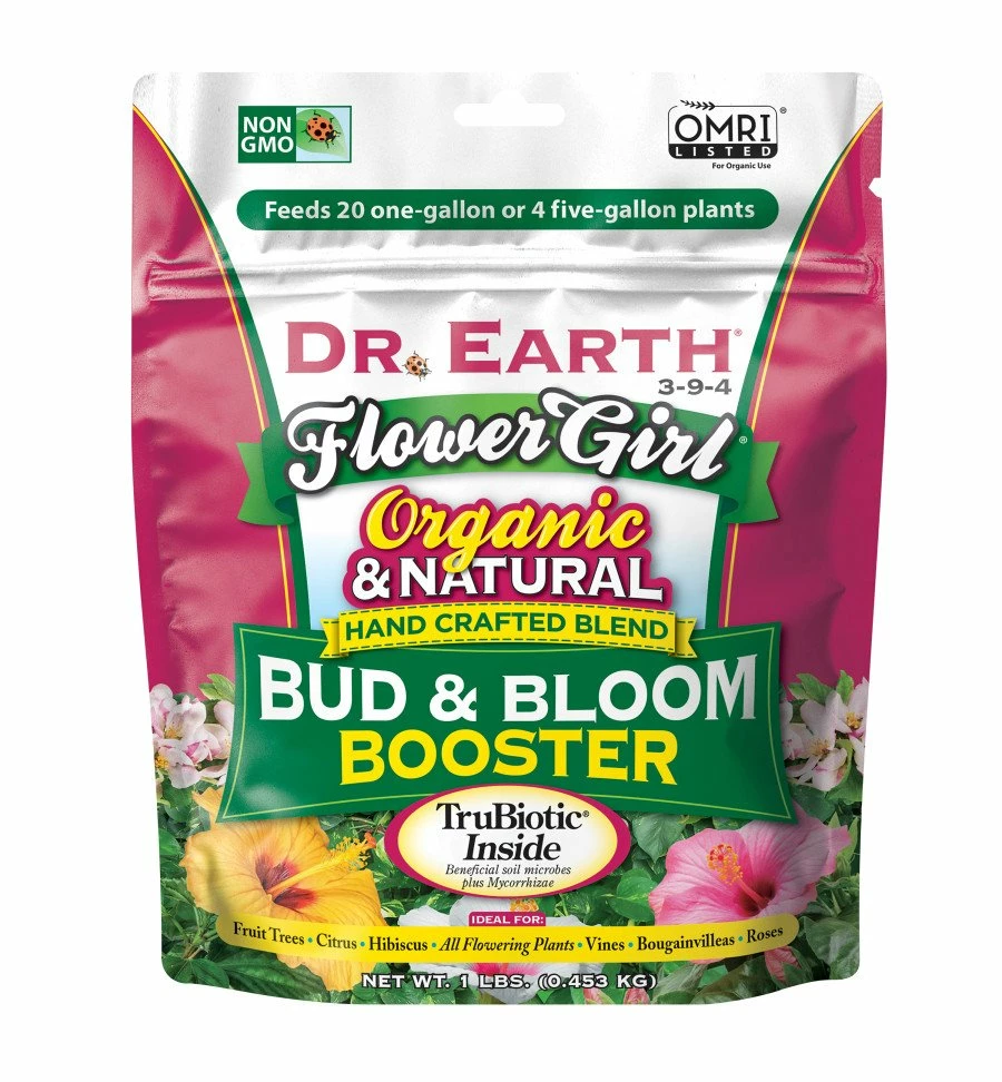 Flower Girl Premium Bud & Bloom Booster produces remarkable results! This 100% organic and natural blend builds soil health, promotes superior buds and blooms with larger and more abundant plant production. Nutrients are released quickly, yet continue to feed for several months. Ultra-premium scientific formula provides optimum levels of primary, essential plant nutrients and multi-minerals. TruBiotic ensures organic nutrients are thoroughly broken down and then released in the soil for plant roots to absorb them as they are needed, contributing to drought tolerance, enhanced nutrient availability and increased plant performance. Ideal for all flowering plants, vines, citrus, Hibiscus, Bougainvilleas and roses.