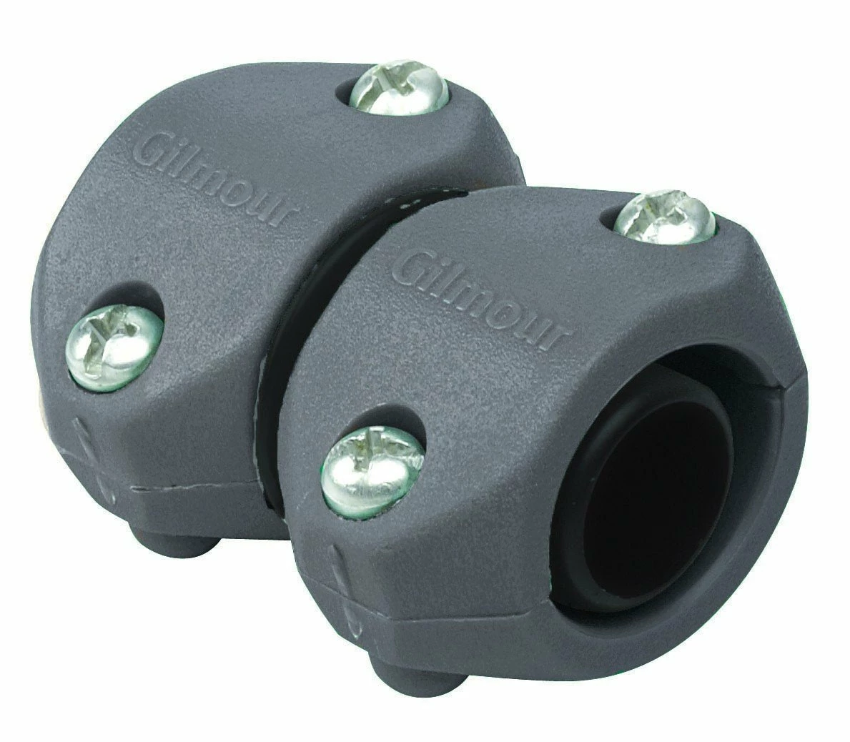Gilmour Poly Female End Hose Mender 5/8in – 3/4in A Strong Poly Hose Mender With Patented Construction For Maximum Strength And Durability. High Grade Stainless Steel Screws Will Not Strip. A Strong Poly Hose Mender With Patented Construction For Maximum Strength And Durability. High Grade Stainless Steel Screws Will Not Strip.save The Cost Of A New Hose With Gilmour Hose Menders And Couplings. They Are Leakproof, Rustproof, Unbreakable, Reusabole And Easy To Use.