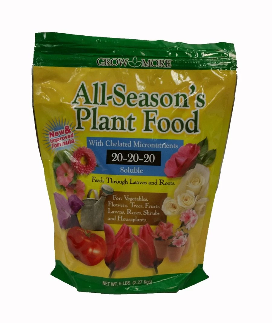 Grow More All Seasons Plant Food 20-20-20 Bag 6ea/5lb MPN 5294 the most popular water soluble formula in the nursery industry. Use for all plants, indoor and outdoor.