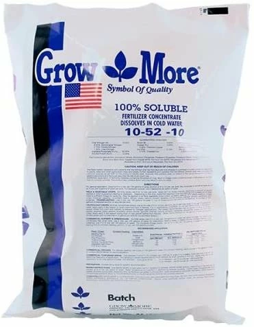 Grow More Fertilizers are formulated to supply sufficient amounts of extra nutrients for high yields. High solubility, purity and the special forms of nitrogen, phosphorus and potassium make Grow More Fertilizers the ideal product. Great for flowers or perennials, it can increase and extend bud set and flowering. Also used for root development of young plants.