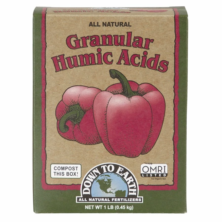 - Down to Earth Granular Humic Acids is a one pound box of all natural fertilizer and is listed by the Organic Materials Review Institute (OMRI) for use in organic production