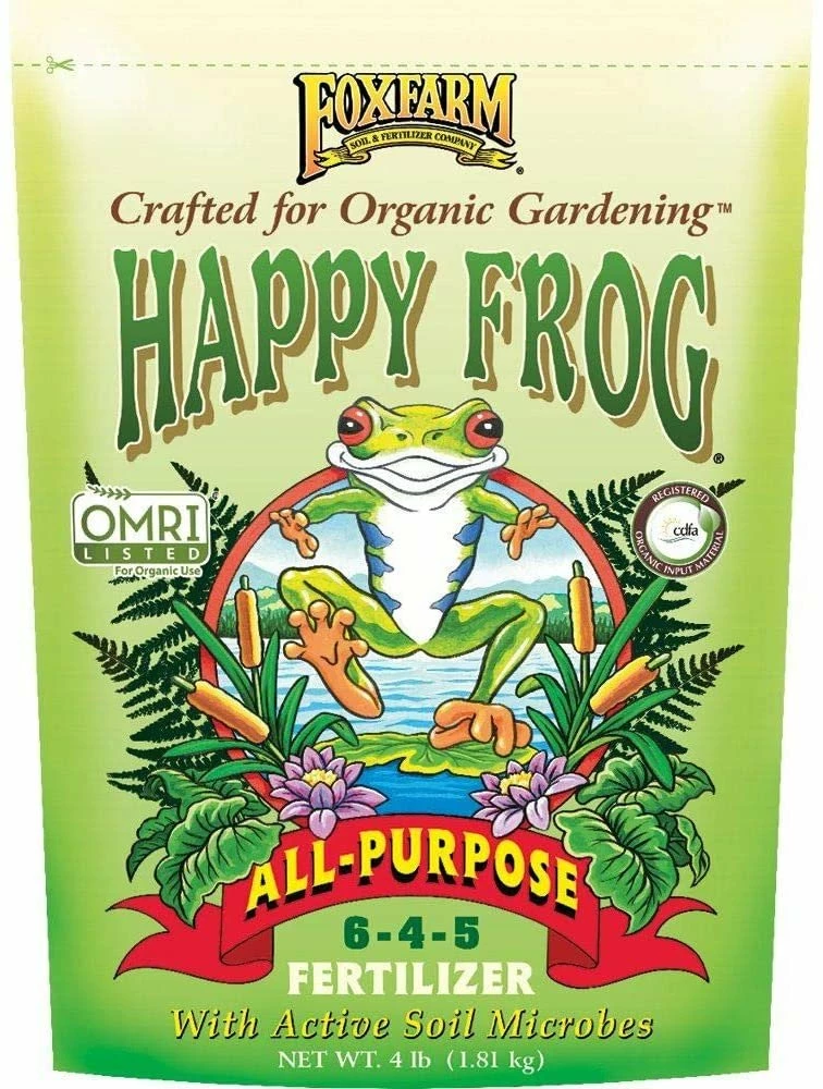 Give Your Garden The Nutrients They Need. Grow Beautiful Flowers, Fresh Vegetables, And More With The Foxfarm Happy Frog Organic All-purpose Fertilizer. This Fertilizer Is Ready To Use And Features A Blend With Soil Microbes To Deliver Nutrition Where Your Plants Need It The Most. Mycorrhizal Fungi In The Formula Help Increase Root Efficiency, Which May Result In Better Nutrient Uptake And Improved Water Absorption From The Roots Of Your Plants. You Can Use This Versatile, 6-4-5 Fertilizer For Vegetable Gardens, Annual And Perennial Flower Beds, Ornamental Plantings, And Container Gardens. The Omri-certified Fertilizer From Foxfarm Is Made For Organic Gardening. This 4-pound Bag Provides Plenty Of Fertilizer For Raised Garden Beds, Vegetable Gardens, And Potted Plants. You Can Enjoy Vibrant Blooms, Healthy Foliage, And Large Vegetable Harvests When Your Plants Receive The Proper Nutrients They Need, And This Formula Delivers. Help Your Garden Thrive With The Foxfarm Happy Frog All-purpose Organic Fertilizer.