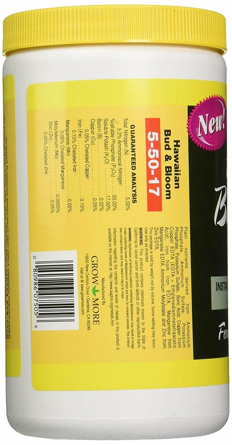 Special supplement for all flowering tropical, near-tropical plants, and most flowering plants in general. Also recommended as a starter and transplant solution. This formula is Urea-Free and safe for all orchids, bromeliads, guzmanias, tropical succulents, and xerophytes. Contains chelated micronutrients which are readily absorbed by plant foliage or roots.