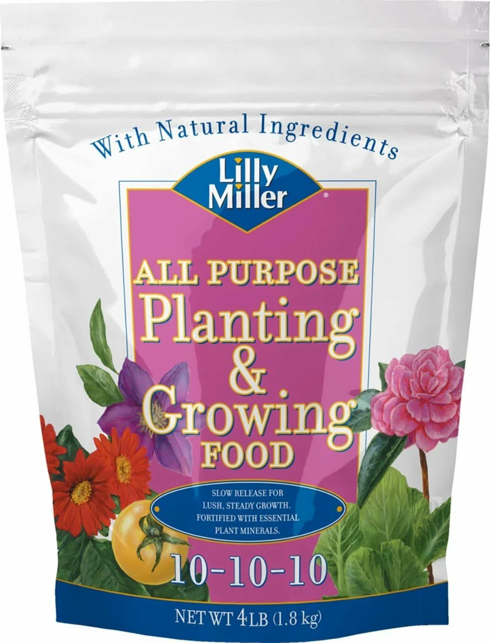 - Lilly Miller All Purpose Planting And Growing Food 10-10-10 4lb All Purpose Fertilizer With Slow Release For Lush, Steady Growth.