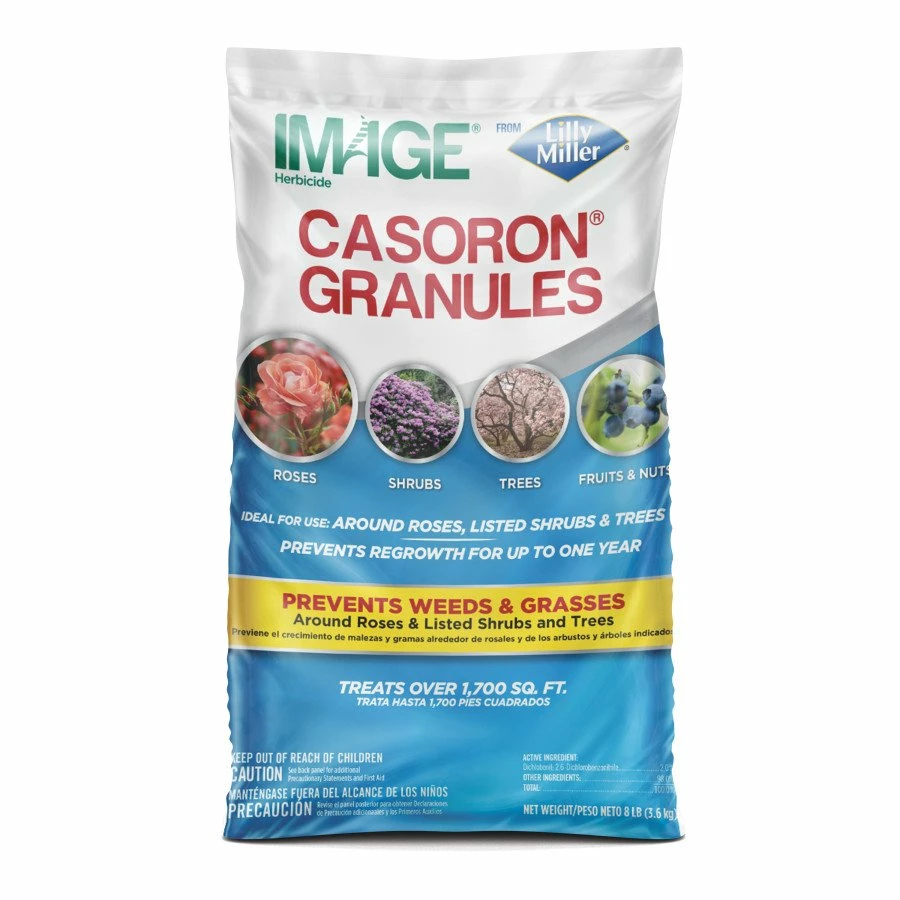 Casoron granules help provide season-long control of annual grassy and broad-leaf weeds and certain perennial weeds. Apply to soil to help prevent weeds and grass. Sprinkle around roses, trees and shrubs for application. Designed to help prevent the growth of 52 different weeds and grasses. One application can provide weed control up to a full season. Treats 1,700 sq. ft.