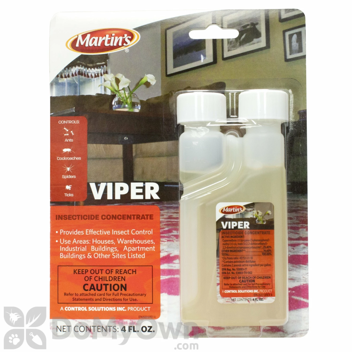 - Mix Viper Insecticide At A Rate Of 1.3 Oz Per Gallon Of Water And Apply As A Coarse Spray To Areas Of Pest Infestation. Fill Sprayer With The Desired Volume Of Water And Add Martins Viper Ec Insecticide. Close And Shake Before Use In Order To Ensure Proper Mixing. Shake Or Re-agitate Sprayer Before Use If Spraying Is Interrupted. Make Up Only As Required; Repeat Treatments When Needed.