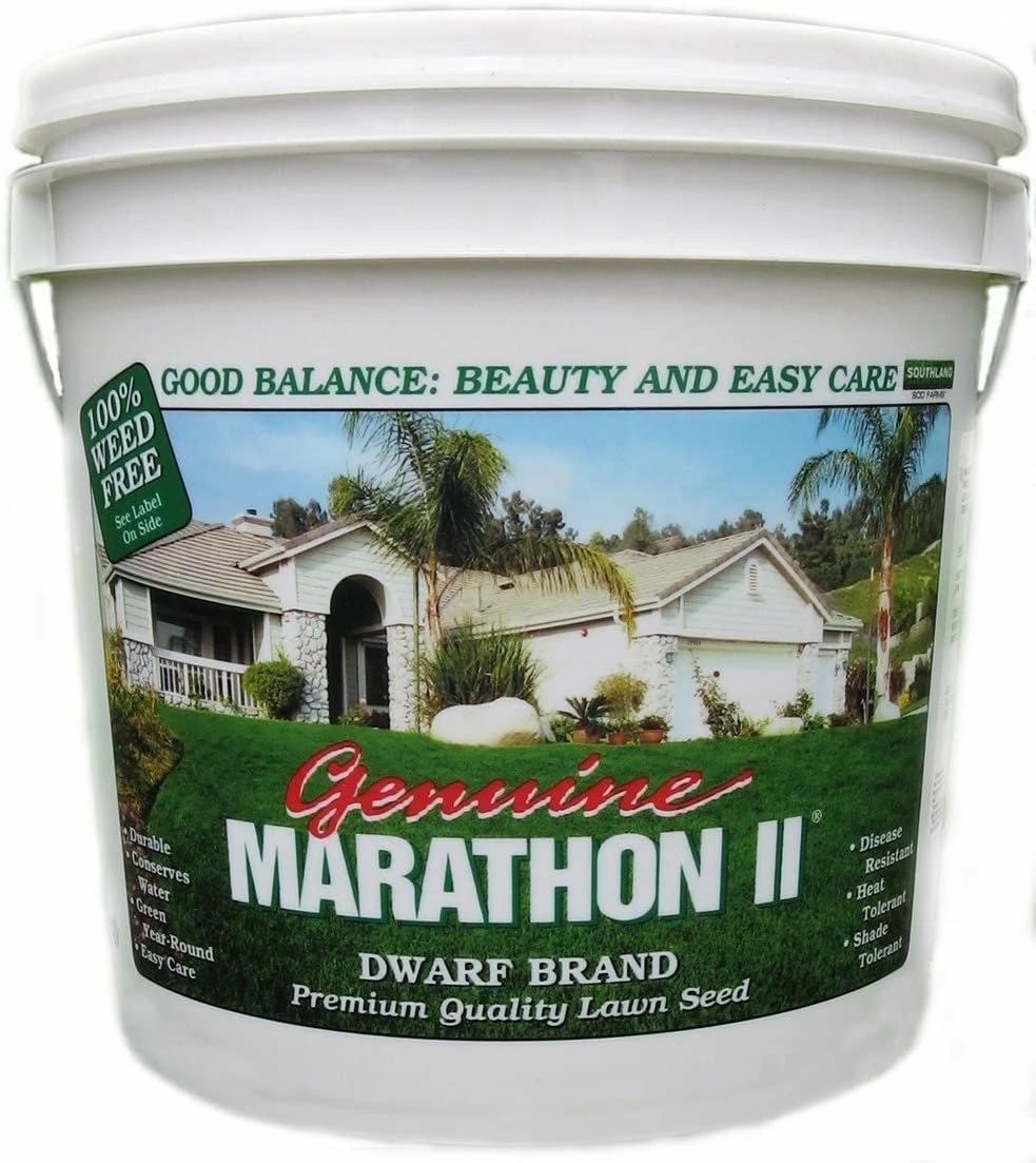 Marathon ii is our most advanced dwarf tall fescue. It retains the excellent durability of the species while enhancing its beauty. Marathon ii can be mowed shorter, has greater density, and slightly narrower leaves, resulting in a more compact carpet like appearance. The growth rate is somewhat slower, particularly in winter. Marathon ii contains encore, a second generation dwarf and is a proprietary variety developed exclusively for southland sod farms and the southern california market area. Primary selection criteria were short mature growth, compact dense crown, dark color, disease resistance, and leaf texture. This product weighs 5 pounds.