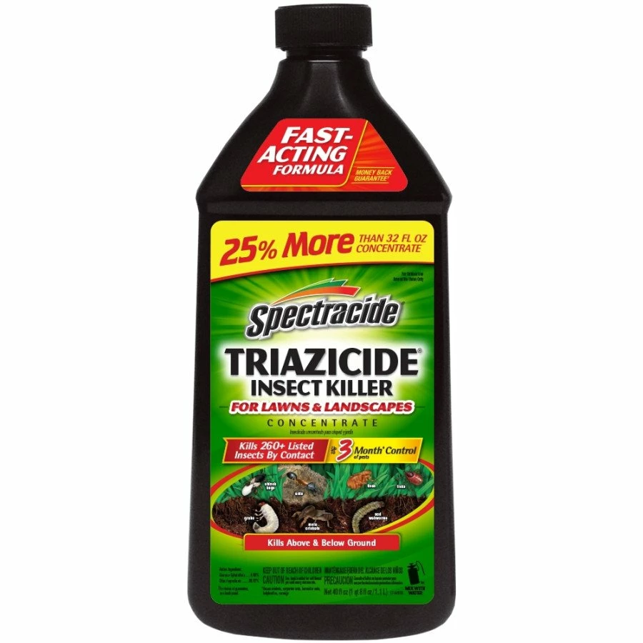 Spectracide Triazicide Insect Killer for Lawns & Landscapes Concentrate features a fast-acting formula that kills 260+ listed insects by contact. Up to 3 months control of pests: house crickets, carpenter ants, harvester ants, ladybeetles and earwigs. It is ideal for use on lawns and landscapes. It is can be used to control pests in lawns, vegetables, fruit & nut trees, roses, flowers, trees and shrubs.